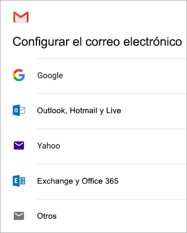 4. Selecciona el tipo de cuenta que estás configurando (por ejemplo, Gmail, Outlook, Yahoo, etc.).