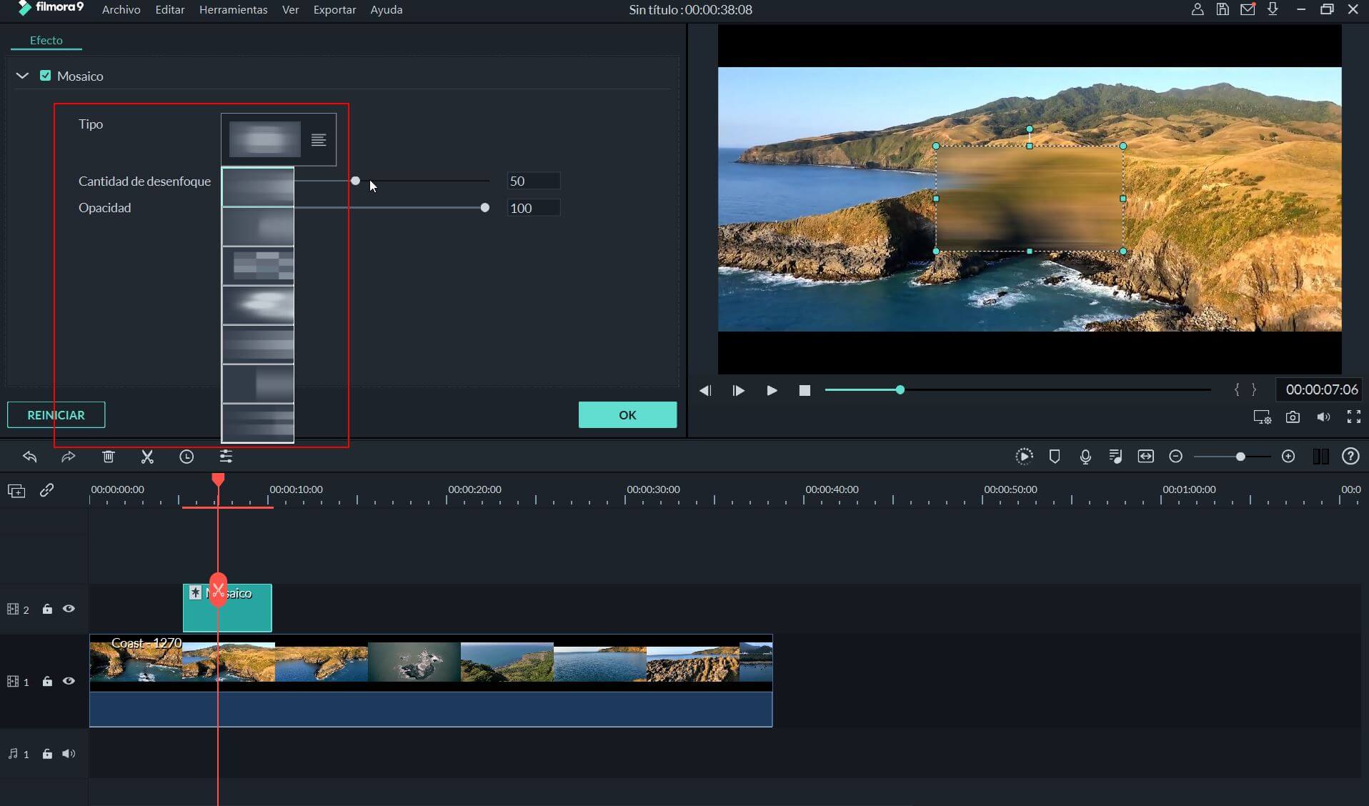 Si la marca de agua es visible y relativamente simple, puedes intentar estas técnicas en Filmora: